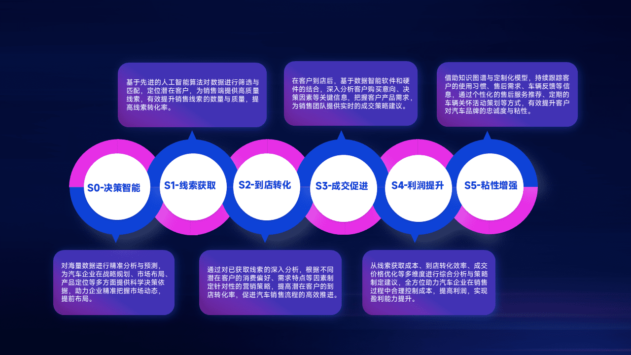 通过拓宽潜在客户来源、、优化线索分配并提高到店转化率,,,以增强销售效率。。。。同时,,,,利用线索数据不断优化分析模型,,,有效提升转化率,,扩大营销影响力。。
