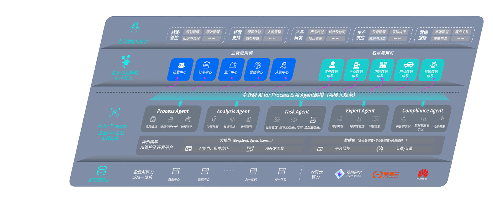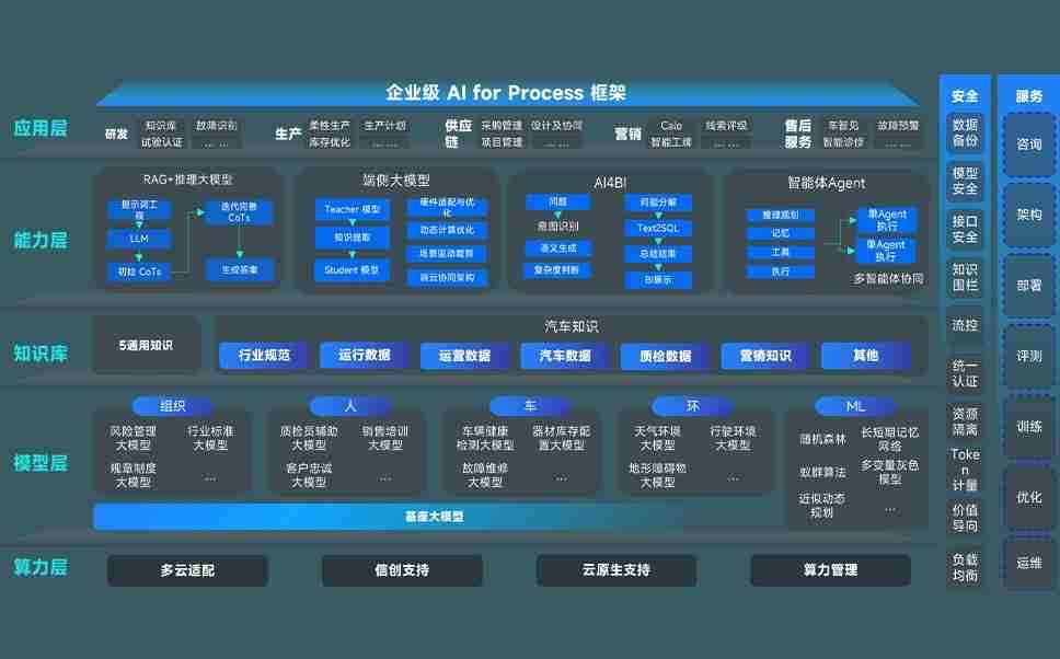 端到端的一站式AI工作空间深度融合了从企业战略规划到日常经营的全流程业务板块,,定向解决车企内部领域多、、、部门多、、、、链条长、、场景碎片化等难题,,支持车企快速构建以AI为核心的生产力写作体系,,,实现任务执行与AI能力的无缝集成与交互